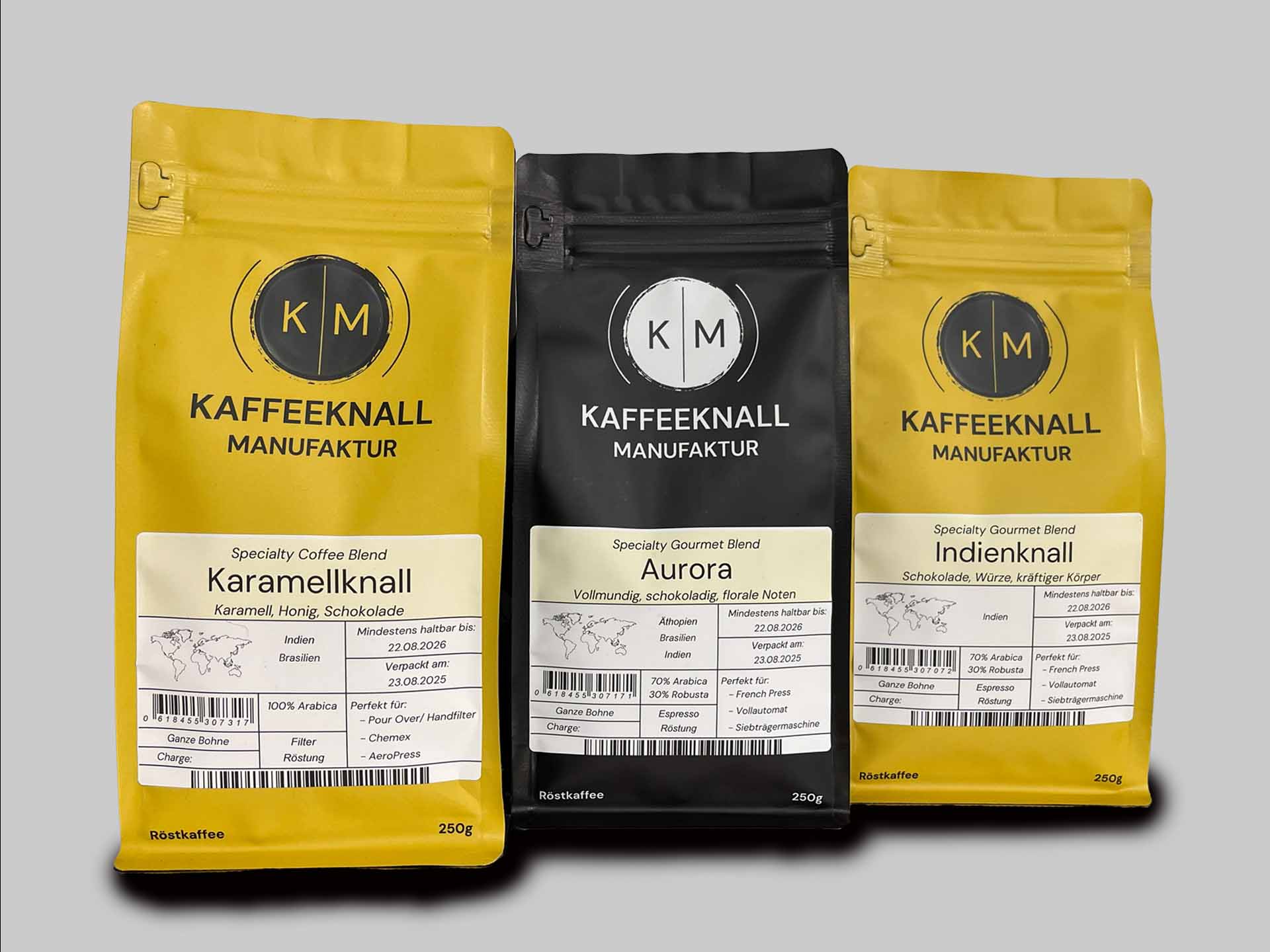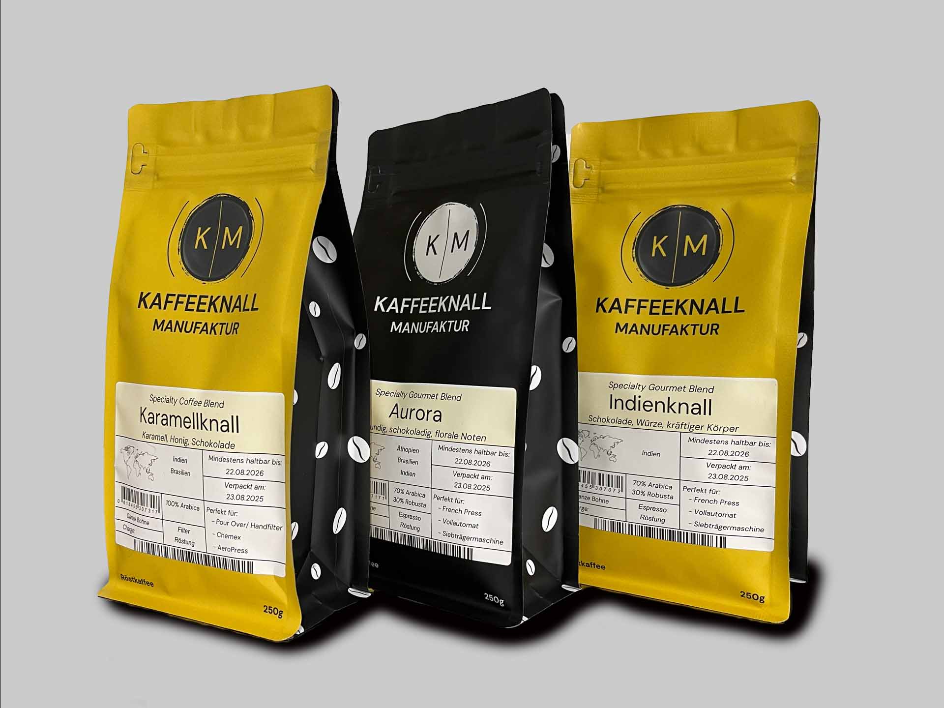 Drei Gourmet Blends aus der Kaffeeknall Manufaktur